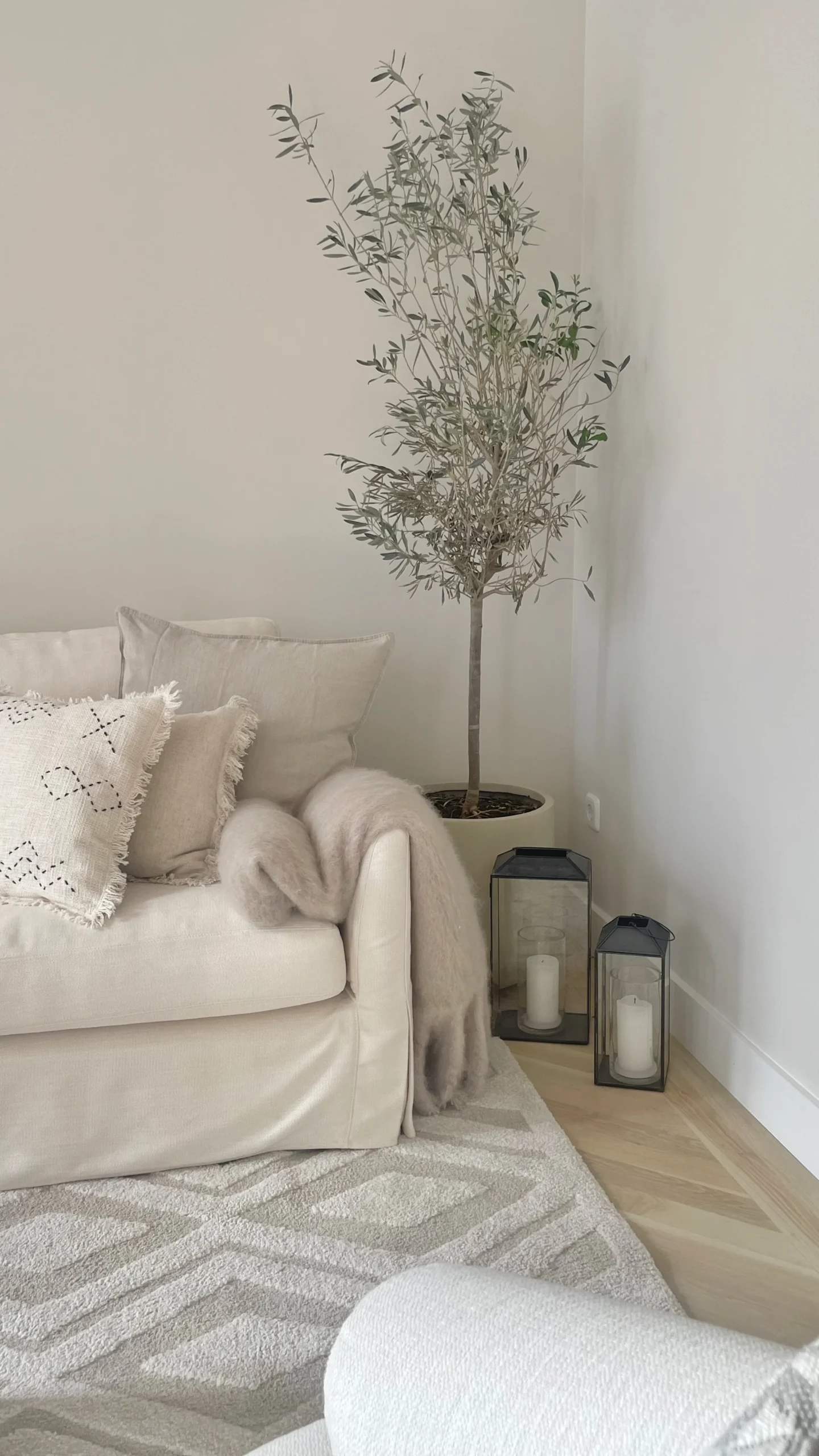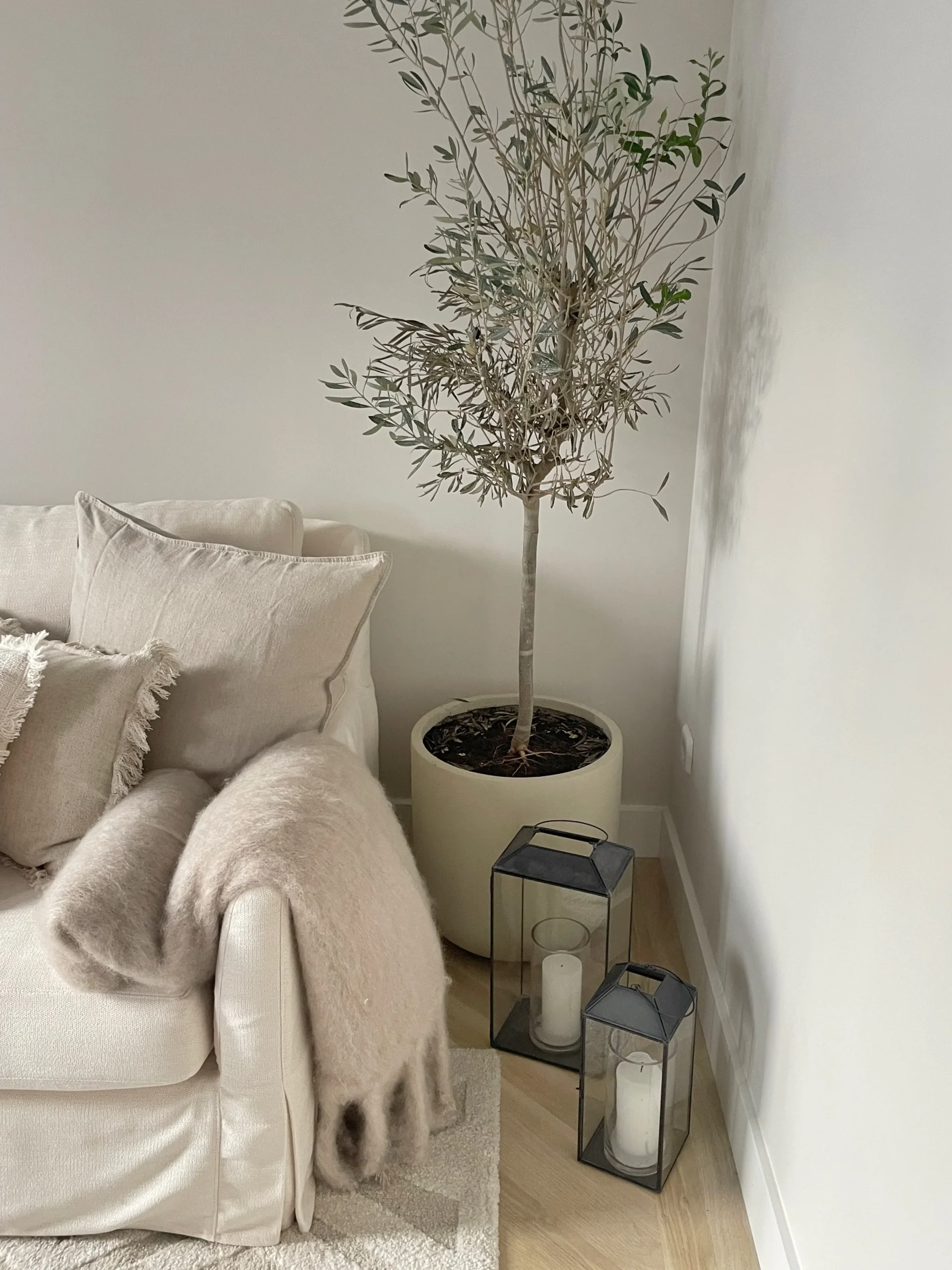 This project was a full online consultation for the client to execute on her own. The goal was to tie the space together by working with neutral colors and luxurious textures. A mix of mediterranean coziness and Scandi chic were combined, creating a calming space, all while including furniture and decor items the client already had.